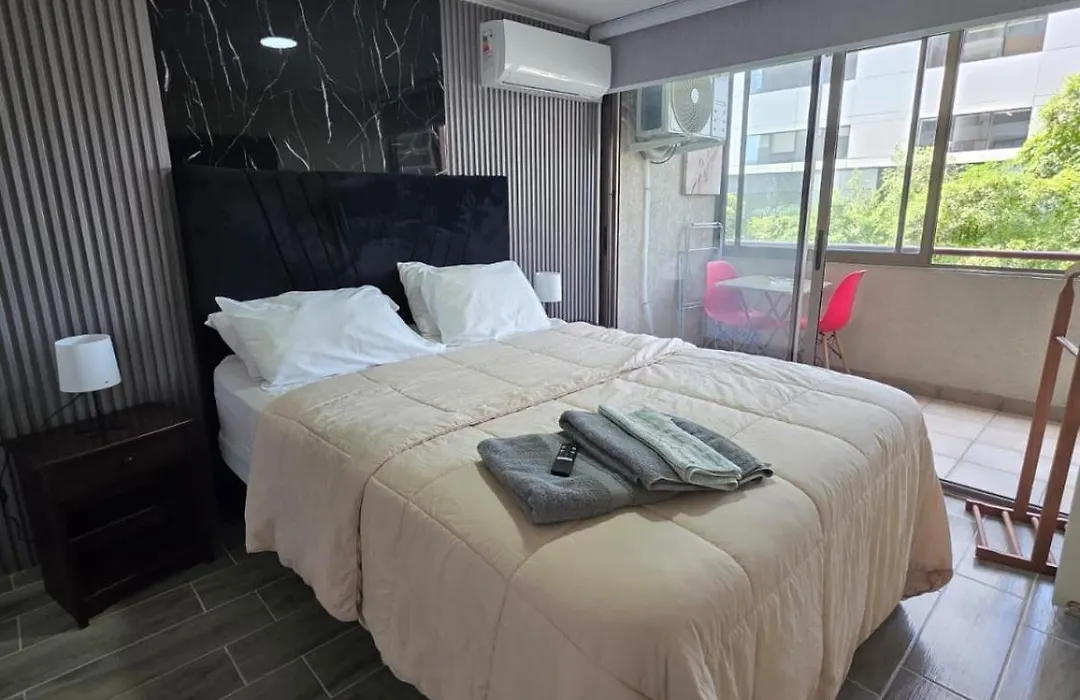 Este apartamento ofrece un balcón, una zona de estar y una cocina con vistas al jardín y comodidades como climatizador. El Apartamento acogedor con ubicación estratégica en Las Condes cuenta con 1 dormitorio. Los huéspedes que se alojen en este establecimiento disfrutarán de la comodidad de disponer de secador de pelo y toallas en el baño. También encontrarás un inodoro separado y una ducha.